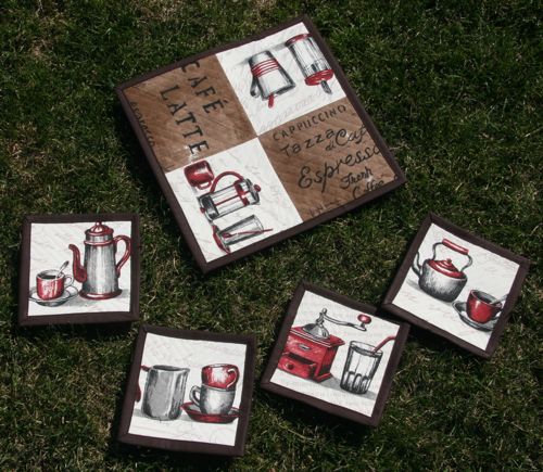 Pokazując wymiankową torebkę zapomniałam jeszcze o podkładkach kawowych- zwykłe proste- całość efektu końcowego to tkanina